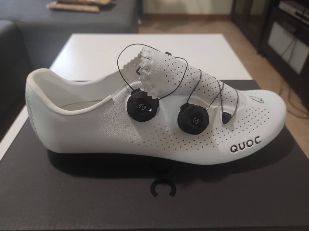 Vendo sapatos de ciclismo de estrada topo de gama novos marca QUOC Mono II no tamanho 43. Os sapatos estão imaculados, completamente novos na caixa e nunca usados de maneira nenhuma. Estou a vender o material que tenho porque de momento estou afastado do ciclismo e não preciso.