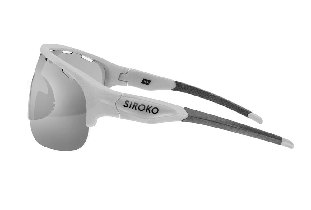 New K3 PhotoChromic Light sport sunglasses. They include our new panoramic, photochromic and interchangeable lens. Full polarized protection with REVO and anti-fog film cover as well as our DrySky system that avoids fogging up. An extremely flexible and resistant PC frame. Ultra lightweight: they only weigh 27 g! Includes hard shell case, microfiber polyester bag, spare earsocks and nose pad. Our photochromic lens is especially sensitive to different light changes, adapting to the luminary conditions of each moment in an extremely efficient way. Ideal for cloudy and clear days and also for environments and terrains in which sunny and shadowy zones alternate. The K3 PhotoChromic lens controls the transmission of light autonomously, going from Category 2 (42% light transmission) to Category 3 (11% light transmission) in less than sixty seconds, optimizing contrast and favoring visibility.