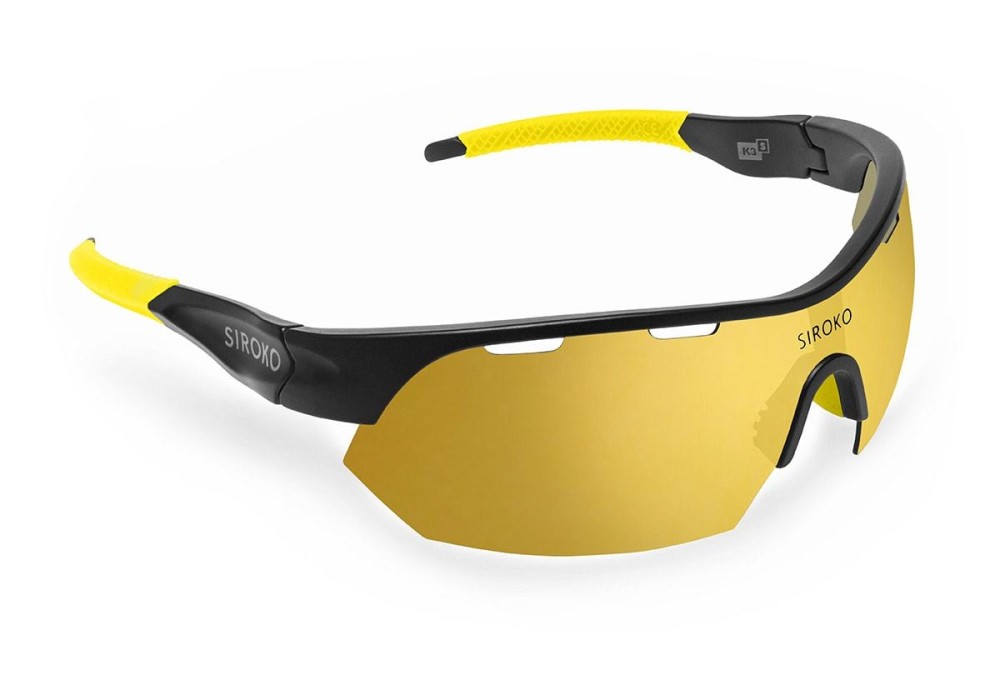 Only with the most advanced technology can you get a pair of glasses like the new Siroko K3s Freeride. Light, ergonomic, dynamic and with a strong aesthetic character. The K3s Freeride stand out because of their design and their maximum efficiency during any athletic activity. Special TAC 1.2 mm polarized interchangeable panoramic lens with anti-fog film, REVO cover and improved DrySky anti-fog system. Extremely flexible and resistant PC frame. Maximum lightness: they weigh only 26 g! Includes hard polyurethane case, microfiber bag and spare bands for nose and arms. Available accessories: photochromic, anti-fog and clear lenses as well as TR90 optical clip.