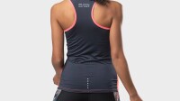 Racerback design and fitted cut for maximum comfort and freedom while exercising. Reflective detailing included for a higher visibility outdoors.
