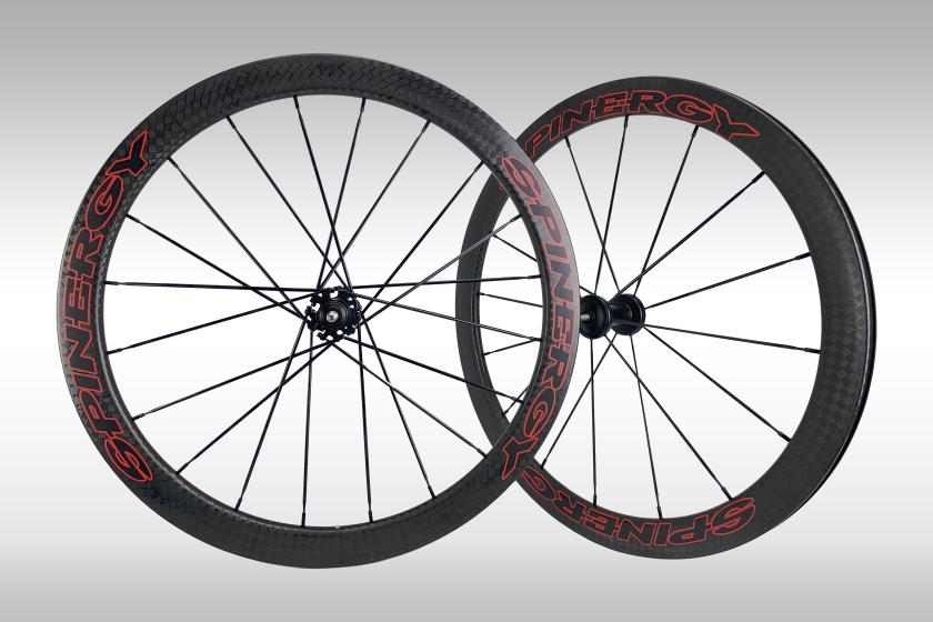 The FCC 47 Track Wheels features front 16 spoke radial and rear 20 spoke radial/2-cross configuration providing all the performance without sacrificing durability or speed. They are designed to keep the rotational weight down and sustained speed up. Included is Spinergy’s exclusive CNC machined designed track hubs.