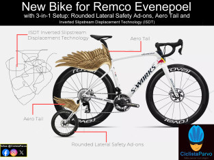 New Bike for Remco Evenepoel with 3-in-1 Setup: Rounded Lateral Safety Ad-ons, Aero Tail and Inverted Slipstream Displacement Technology...