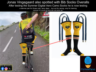 Jonas Vingegaard also spotted with Bib Socks Overalls After testing the Summer Digital Aero Camo Socks he is now testing a warmer pair for those col...
