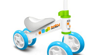 Bicicleta de equilibrio para babé com 4 rodas. Estimula e ajuda a aprender a andar de bicicleta. Quatro rodas grandes de pvc para maior estabilidade. Selim de largo espuma para maior conforto e segurança. Guiador ajustável. Limitação do ângulo de direção.