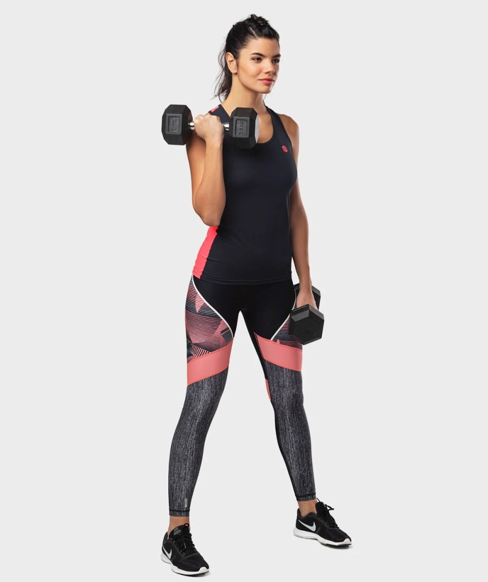 Racerback design and fitted cut for maximum comfort and freedom while exercising. Reflective detailing included for a higher visibility outdoors.