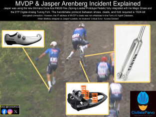 MVDP & Jasper Arenberg Incident Explained Jasper was using the new Shimano Dura-Ace R9026 Flex (Spring-Loaded Prototype Pedals) fully integrated...